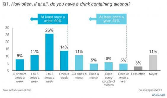 60% of UK adults drink alcohol at least once a week