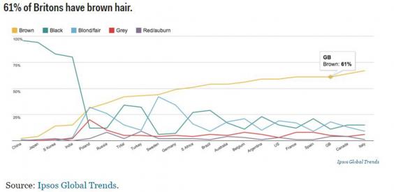 61% of Britons have brown hair