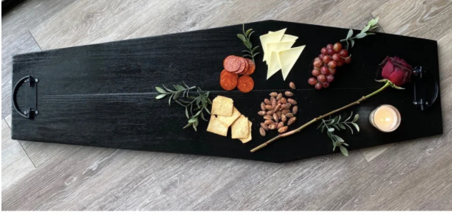 Get the party started with a spooky take on your own charcuterie–or should we say charspookery–with this coffin shaped board that’s handcrafted and a whopping 42 inches long and 14 inches wide so there’s more than enough room to keep all your ghoul friends fed for the eve.