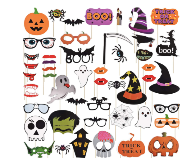 48 Pieces Halloween Photo Booth Props Kit Scary DIY Costumes Props with Wooden Sticks for Party Decorations