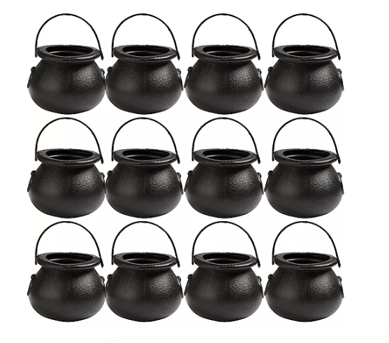 It’s fun to hand out something for your guests to take home, so why not treat them to a bit of childhood fun by filling one of these mini cauldrons with Halloween candy (here’s a good mix) so they can snack away on the way home? Simply fill a cellophane treat bag with your favorite sweets, tie it off, and plop into the mini cauldron.