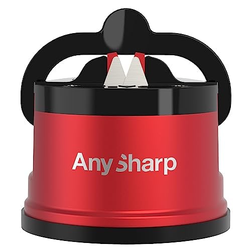 AnySharp Pro - World's Best Knife Sharpener - For All Knives and Serrated Blades - Metallic Red