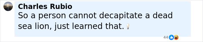 While officials confirmed that the sea lion was already deceased when the man removed its head, they have not shared details about how the animal had lost its life.