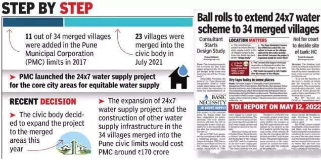 PUNE: The expansion of 24x7 water supply project and the construction of other water supply infrastructure in the 34 villages merged into the Pune civic limits would cost around Rs170 crore.