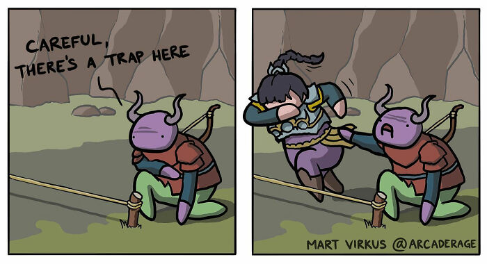 To provide you with a better understanding of what you're about to experience, let's revisit what the author of the series, Mart Virkus, shared with us about Arcade Rage the last time: “They are inspired by games, movies, memes, and other art in general. But also the things going on in the world, whether it’s corona or climate issues. The ideas come together when these two things meet. I just like layering in different meanings into a single comic. I guess it’s just the fun of finding new connections between art and life. Sometimes it’s about highlighting a more serious issue while not making it obvious, and letting the reader make that connection. So it’s like a mind game for both me and the reader. And other times, it’s just random silly jokes with no deeper meaning. Or just jokes about games I like. Above all, making these just makes me feel less anxious about the world and if it does that for others too, then that’s a win."