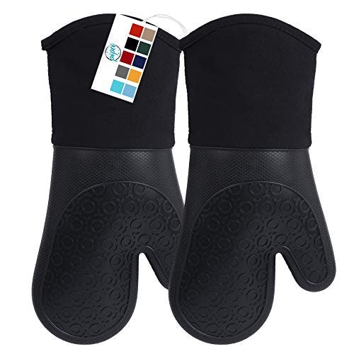 Crafted from a super thick padded lining and a nonslip rubber, these may be the best oven mitts you’ve ever known. The 4.8-star rating says it all. They have a durable design and can withstand heat up to 450 degrees Fahrenheit. Snag them in four different colors.