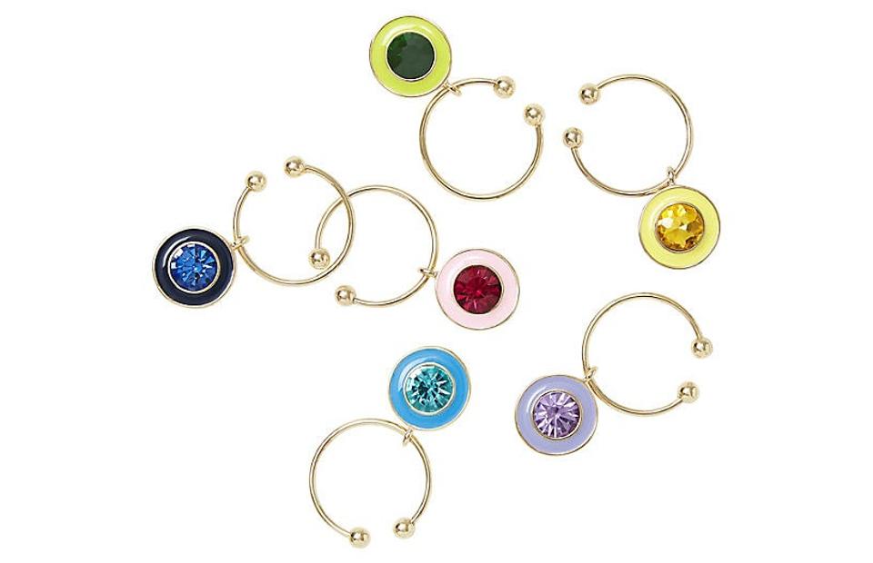 Wine charms are ideal for anyone who regularly hosts parties, as they allow everyone to keep track of their drink. These gem wine charms are sure to earn compliments, as each one features a brightly colored glass stone with an enamel halo. The charms come in a pack of six and they’re mounted on gold rings that can be popped onto the stem of a wine glass.