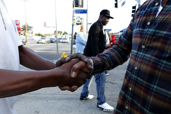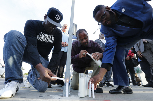 As the vigil closed on the corner of Florence and Normandie, Ali lit the wicks of candles and placed them on the curb. His hope: for the message of reconciliation and healing to resonate.