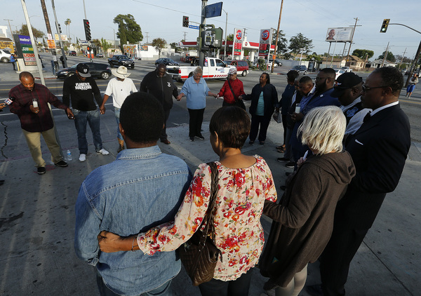 On Monday, as the anniversary of the 1992 riots approaches, residents and community activists gathered at Florence and Normandie avenues, the notorious South L.A. intersection that was ground zero of the unrest, to commemorate King, Harlins and the 54 people who died in the riots.