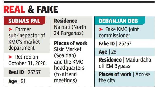 KOLKATA: Conman Debanjan Deb, who had claimed to be a joint commissioner of KMC and held fake vaccination camps in the city, used the KMC employee ID number of a former civic market department sub-inspector. Deb used to flaunt the fake KMC ID card with the number 25757 to masquerade as a functionary of the civic body.