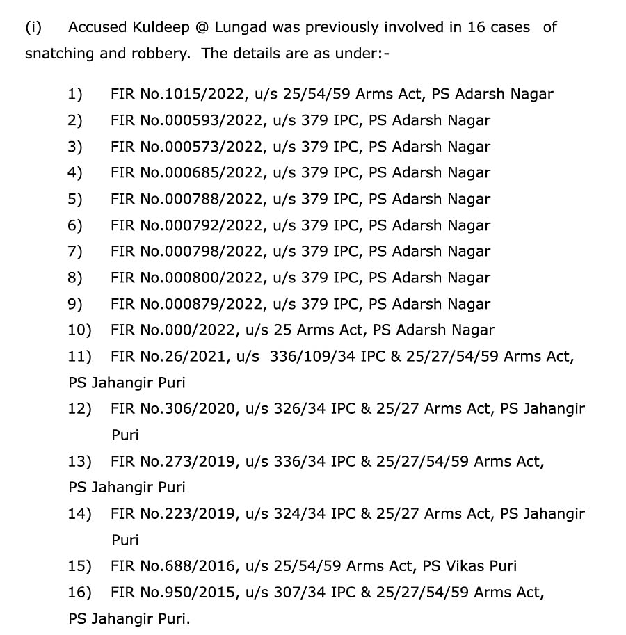 जहांगीरपुर का रहने वाला 26 वर्षीय कुलदीप कभी ठेले पर सब्जी बेचता था. उसका लंबा आपराधिक रिकॉर्ड है. राजधानी दिल्ली में उसके ऊपर 16 मामले दर्ज हैं. इसमें लूट, छिनैती, चोरी और आर्म्स एक्ट जैसे केस शामिल हैं. इसमें से 10 मामले आदर्श नगर थाने में, पांच जहांगीपुरी थाने में वहीं एक विकासपुरी थाने में दर्ज हैं. दोस्त उसे लुंगड़ के नाम से बुलाते थे.
