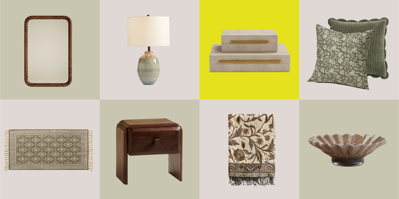 This collection is built around that idea of dialogue — pieces that speak to one another without feeling matched. A sculptural lamp (like this Heathfield one) paired with floral heritage-inspired textiles (of which there are some great ones on Zara right now), subtle pattern grounding the space, and materials that add warmth without heaviness. The result is a bedroom that feels settled and personal, not styled all at once, but brought together thoughtfully over time.