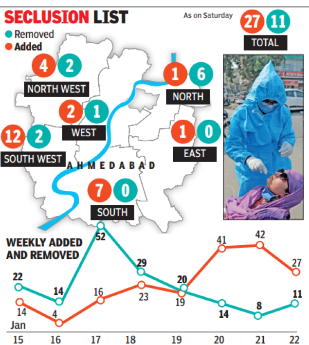 AHMEDABAD: Ahmedabad Municipal Corporation declared 27 new micro-containment zones in the city and removed curbs from 11 societies.