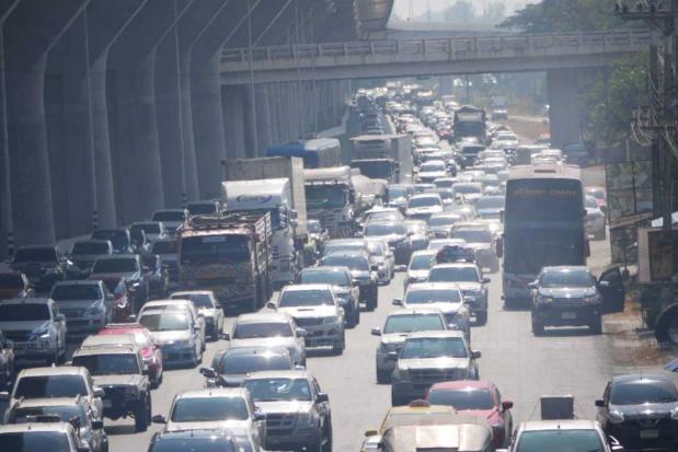 Traffic moved slowly for a distance of 27 kilometres on Mittraphap Highway from Pak Chong district to Si Khiu district in Nakhon Ratchasima on Sunday morning.