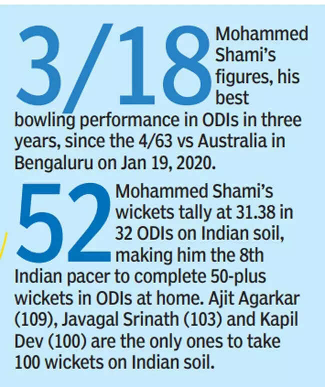 India completely outplayed New Zealand on a pacer-friendly pitch. After India elected to bowl first on a surface which was aiding generous lateral movement, their pacers, led by Shami, fired on all cylinders to shoot out a listless New Zealand, who recorded their third-lowest ODI score against India.