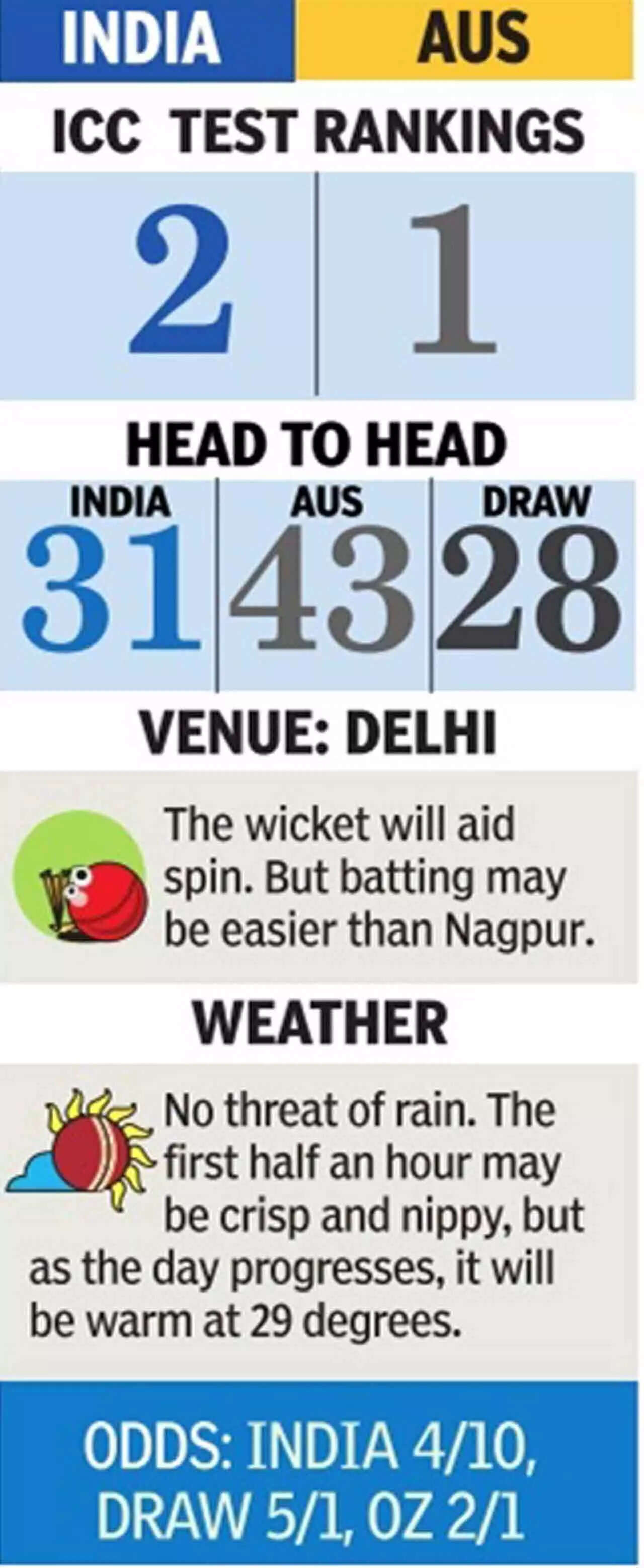 India are clearly sniffing the kill. Their spinners will be hunting around the drier patches at the good-length area of the pitch at the Ferozeshah Kotla. India have got the combination just right for the conditions. In the first Test in Nagpur, the spin trio choked the Aussie batters with immaculately tight lines and trajectory before squeezing the life out of the bowlers with the bat.