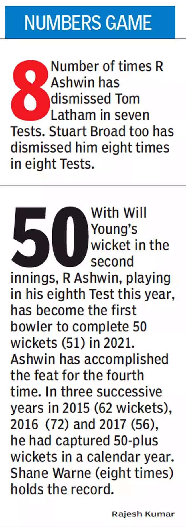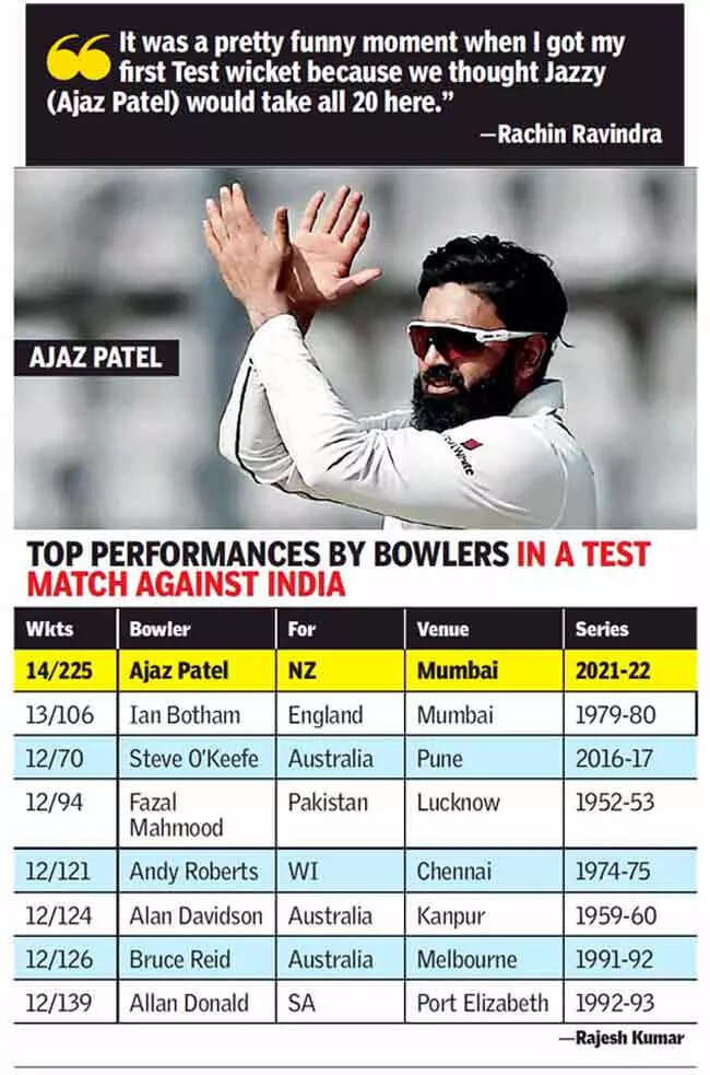 Unsurprisingly, on a turner, the star of the show for India was again Ashwin, who, besides scalping Taylor, grabbed the wickets of New Zealand openers -stand-in-captain Tom Latham (lbw with one that went through as the batsman played for the turn) and Will Young (caught bat pad off a sharply turning, bouncing delivery).