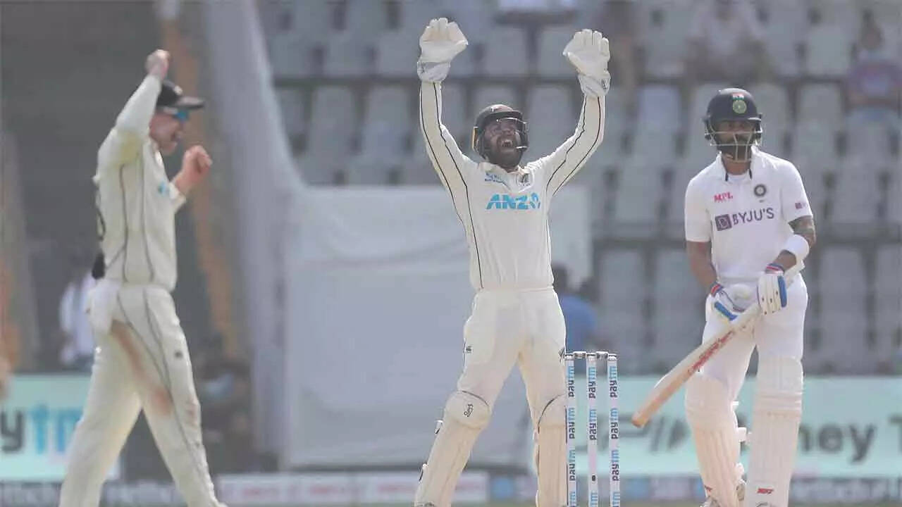 MUMBAI: Cheteshwar Pujara's poor show continued while skipper Virat Kohli got a debatable leg before decision as India went into tea at 111 for three against New Zealand on the curtailed opening day of the second Test.