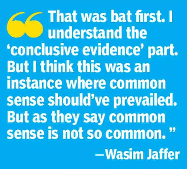 Third umpire Virender Sharma, after watching multiple replays from every available angle, found no 'conclusive evidence' to overturn the on-field call and asked Chaudhari to stay with his decision. It was a tight call and Sharma seemed to be at his wits end as he forgot to ask for ball tracking, the final step in DRS, and had to be reminded by his colleagues in the middle.