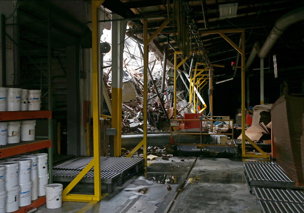 A third building was damaged when a piece of pipe about 18 feet long pierced the roof of the Pioneer Industrial Corp. building. The pipe knocked out the building's sprinkler system, but no one was injured there, Jenkerson said.