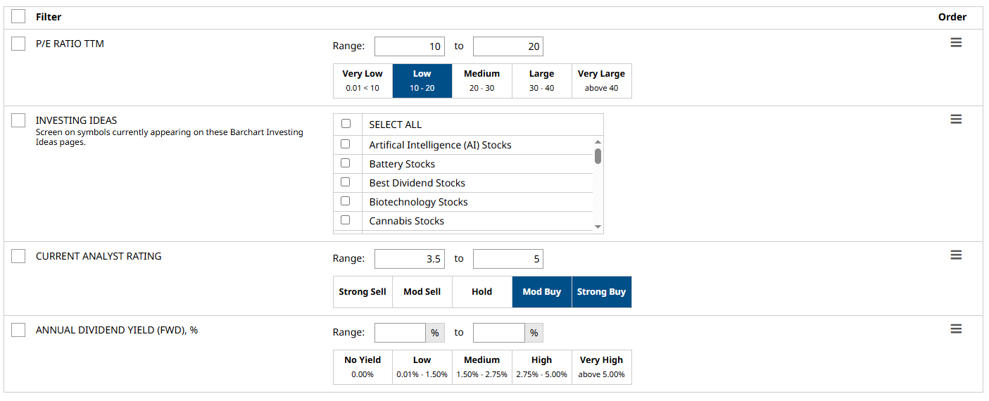 I used Barchart’s Stock Screener to find the highest-yielding companies on my watchlist.
