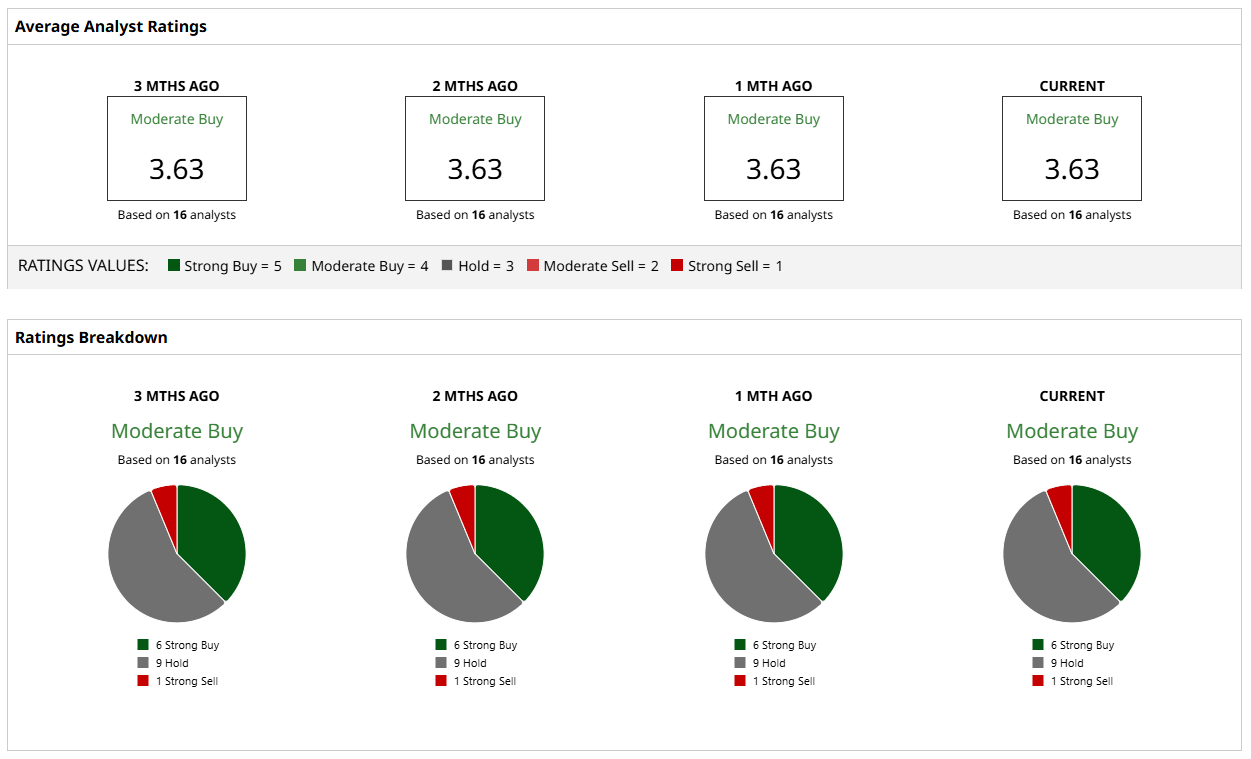 A consensus among 16 analysts rates the stock a “Moderate Buy”, a sentiment that has been consistent over the past three months.