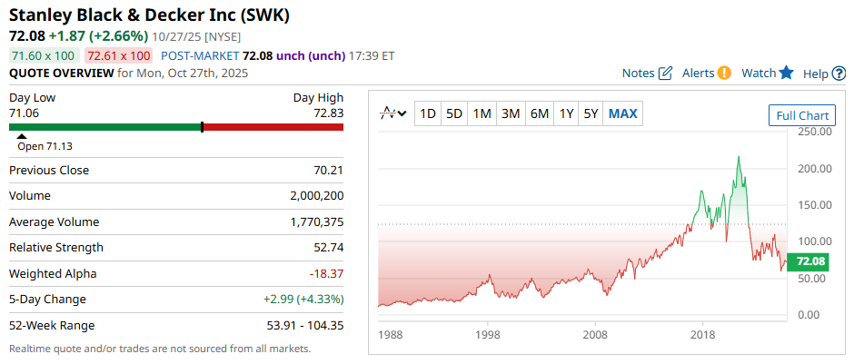 Stanley Black & Decker Inc (SWK)