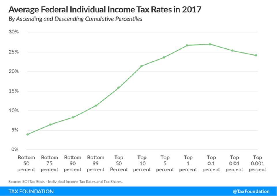 And that 20.8% rate itself is misleading because of the many Americans who pay no income taxes at all. Looking at the top income earners, the average goes up to 25%—again, before we consider the other taxes out there.