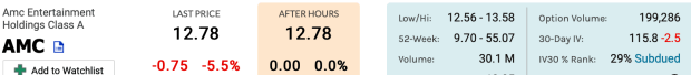 Let’s look at a comparison of Amazon (AMZN)’s current 30-Day IV, and how it ranks against classic meme stock AMC’s IV.