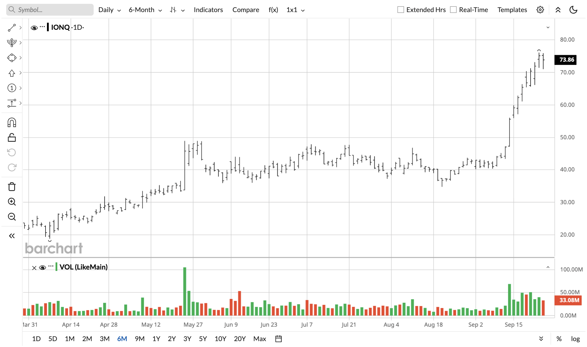 IONQ stock is up 833% over the past year.