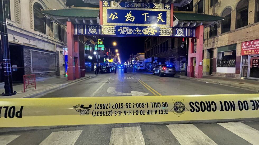 A woman was killed and a gunman among two others wounded in a shootout Friday night in Chinatown.