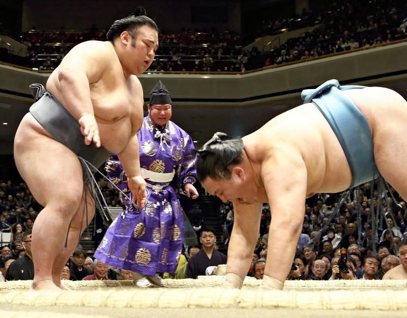 Sekiwake Takayasu, who aims to return to the ozeki rank with 10 or more wins at this tournament, suffered his third loss, falling to komusubi Daieisho (2-3) after a fierce exchange of shoves before being pushed out of the ring.