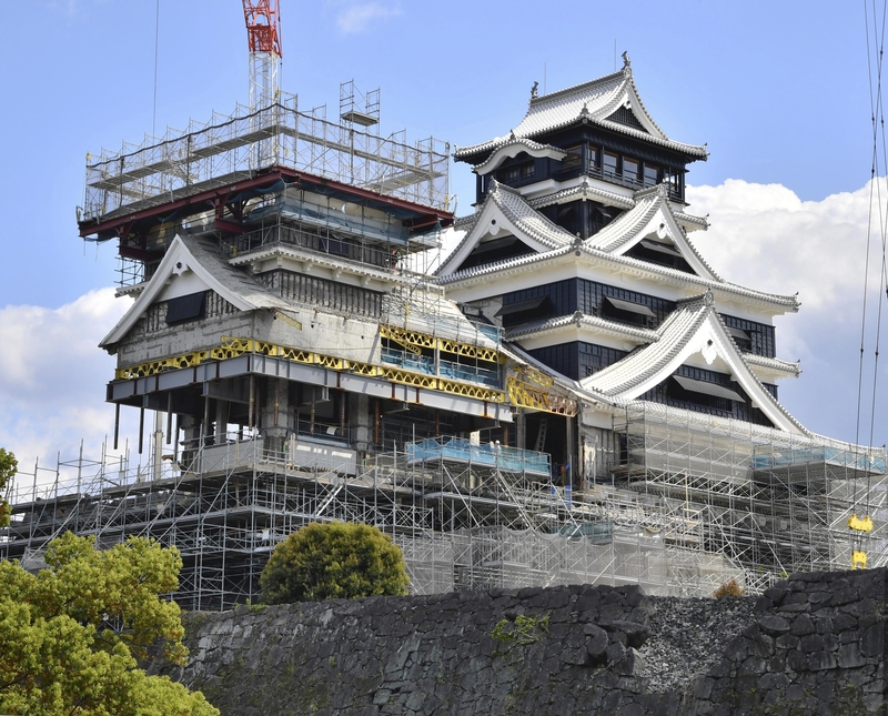 Kumamoto Castle in Chuo Ward, Kumamoto, was also heavily damaged in the 2016 quake. Reconstruction work on the castle has been underway, with an aim of completing the project by the end of fiscal 2038.