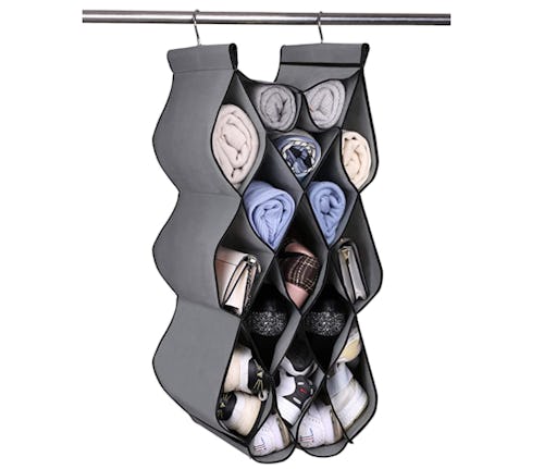 A hanging organizer for socks, underwear, & more