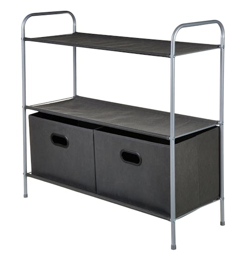 The closet shelves that come with 2 storage bins