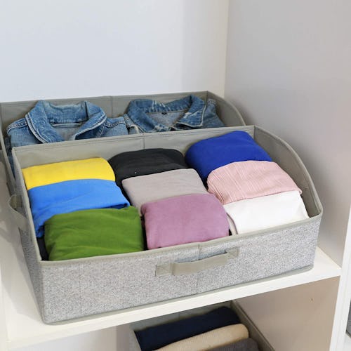 When you're done using these storage bins, simply collapse them down so that they'll lie flat underneath your bed or in a closet. The inside is made from thick cardboard, while the exterior is covered with soft fabric to keep your items safe.