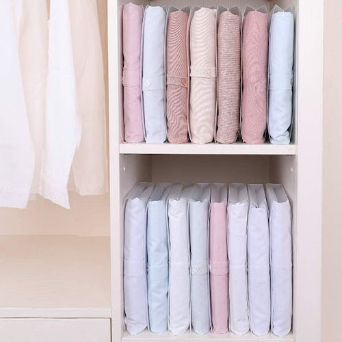 Folded T-shirts take up a ton of space on shelves, whereas this little stack of dividers helps compress them down into a convenient pile. It'll also keep your shirts wrinkle-free — but the best part is that you can easily move it from your closet into your suitcase when it's time to travel.
