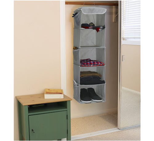 Ever wish you could have just a few extra shelves in your closet? Just hang this organizer up — problem solved. It features five shelves for everything from shoes to purses, as well as three mesh pockets on both sides.