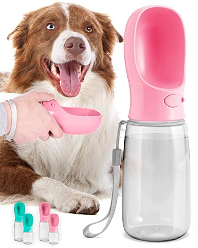 MalsiPree Dog Water Bottle, Leak Proof Portable Puppy Water Dispenser with Drinking Feeder for Pets Outdoor Walking, Hiking, Travel, Food Grade Plastic (19oz, Pink)