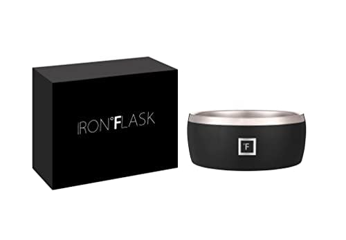 IRON °FLASK Dog Bowl - 32 Oz Stainless Steel, Non-Slip Rubber Bottom, Durable, Pet Food and Water, Cats Feed, Midnight Black