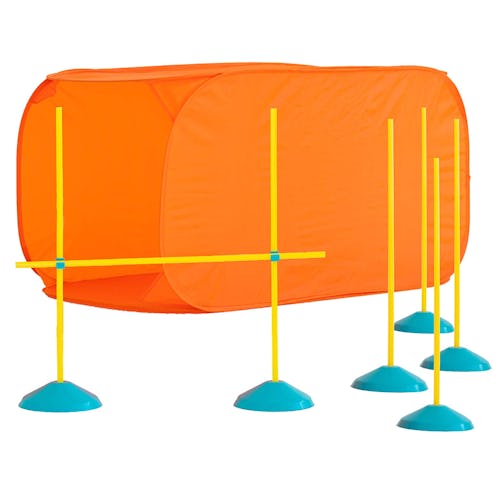 Training isn’t something that you do just once and then never again. It takes constant reminders to teach your pup and help prevent naughty behavior. “Dogs need consistency when it comes to training,” Rice says. “If you’re not consistent with your training, your pup may become confused or frustrated and begin to display bad behaviors. Make sure to commit to regular training sessions with your pup for best results.” Training doesn’t have to feel like a chore, either. This fun agility training kit can be set up indoors or outdoors and helps provide physical activity, opportunities for your pup to strengthen their listening skills, and bonding time. Set up this obstacle course for them and teach them how to walk where you want and even jump.