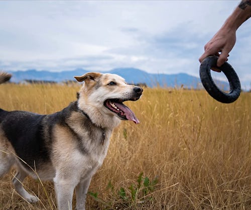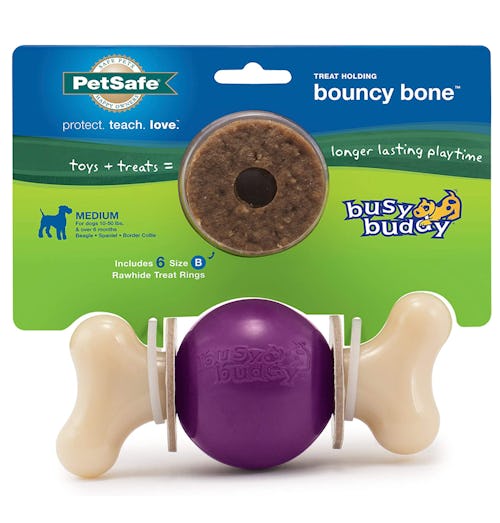 It is not sufficient to merely chastise your dog or remove the object they are tampering with when they are acting inappropriately, Thomas Villalpando, dog behaviorist and co-founder of ipetguides, tells Bustle. “Giving your dog a different option will help you change their behavior. An illustration would be a dog eating something it shouldn't be. People frequently refuse the dog's request and take the item away. However, they ought to remove it before giving them something else to gnaw on.” Distract your pet and give them something they can chew on by swapping that sock for this super-durable chew toy. The tear-resistant ring is designed from nontoxic rubber and is ideal for medium and large dogs.