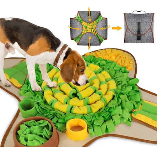 “One of dog owners' most significant mistakes is that they stop focusing on how their dog gets quickly bored,” Richard West, founder of PuppyHero, tells Bustle. “They misunderstand a dog's boredom as bad behavior, which makes the dog behave worse. Dogs need enriching activities that will keep them busy and happy. You can choose puzzle toys or a snuffle mat that will make your dog happy. A bored dog will always have mood swings, making it hard for you to train them.” This snuffle mat provides a fun, interactive way for your dog to eat meals and snacks while satisfying their instinct to dig.