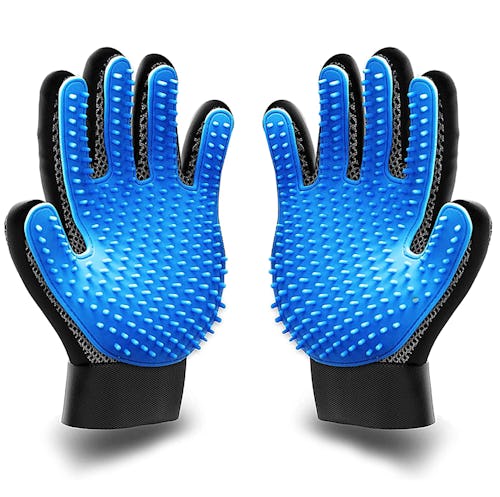 “We see some pets get confined nearly full time, which causes extreme excitement and worse behavior during the rare times they are allowed out to interact with the family,” Colleen Lambo, a veterinarian with The Vets, tells Bustle. If you’re tempted to confine your dog when they’re too excited, instead Lambo recommends training them to be calm in your presence. Using positive reinforcement methods like these grooming gloves that massage your pet as they gently detangle fur and dirt will “divert their behavior much quicker than locking them up or punishing them,” Lambo says. These gloves have gentle and soothing silicone tips and boast more than 12,000 reviews.