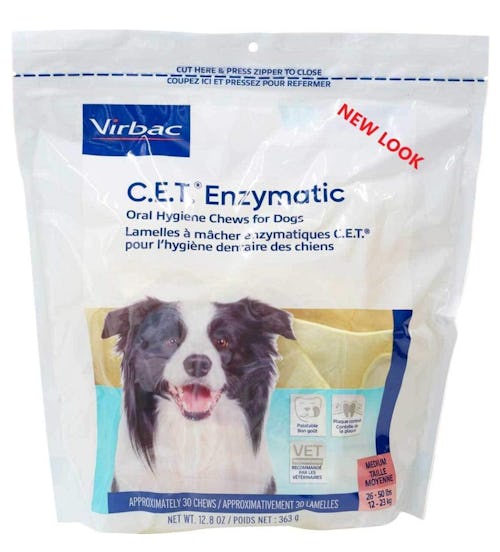 Not tending to your dog’s dental health can lead to severe oral pain, difficulty eating, and create larger medical issues. “If you aren't able to brush your pup's teeth daily (we recommend keeping their toothbrush near your toothbrush to help you remember), consider dental treats and toys to help keep them clean in between full dental visits,” Lambo says. These enzymatic chews made from beefhide help prevent plaque and tartar build-up, keeping teeth and gums overall healthier.