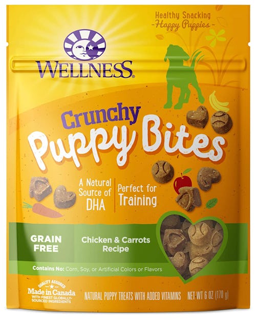 Just because puppies are young doesn’t mean they can’t begin to understand which treats are just a wee bit more special than others. Catch your pup doing something extraordinary (like that first time they don’t go potty in the house) and reward them accordingly to ensure they repeat their behavior with these high-value puppy treats. The mini bites are made with chicken and carrot (they come in three additional flavors like lamb and salmon) and they are a natural source of DHA for brain development. Better still: they’ve earned cult classic status with more than 50,000 reviews.