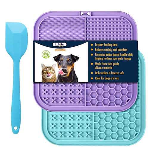 If you’re all out of ideas, try this licking mat that helps distract them, alleviate boredom, and even reduce stress. It features suction cups on the back to keep it in place and you can add peanut butter or your pup’s favorite treat to the textured front.