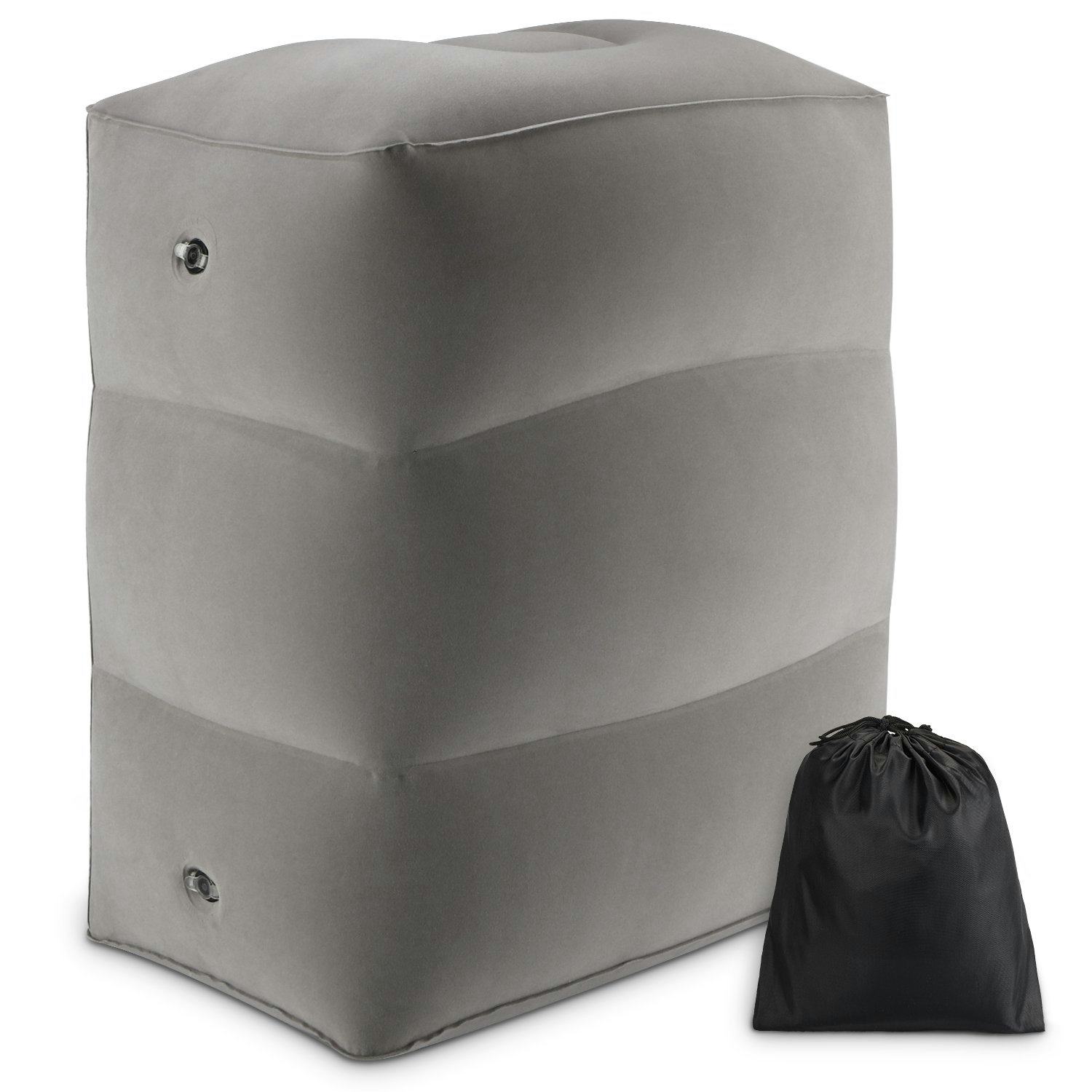 If you’re on a road trip and lounging in the backseat of the car, putting your feet up and relaxing is a treat. This inflatable ottoman is ready to cradle your legs in soft comfort at the right height whenever there’s downtime. It comes in its own travel case, and it’s covered in a soft fabric.