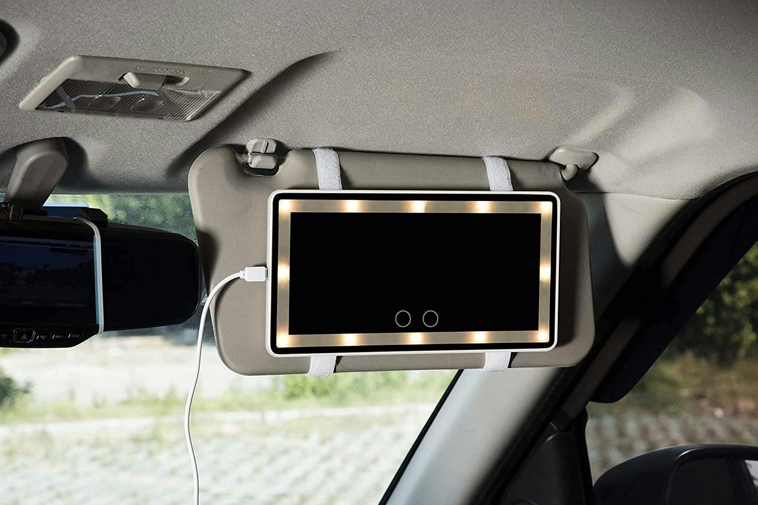 If you want to be able to put on some makeup or fix your hair while on your way to an event, this lighted mirror that attaches to the visor will make that so much easier and time efficient. Plug it in via USB, choose from the three light colors, and dial up the brightness to where you need it. You’ll be able to see clearly on the 10-inch-wide mirror.