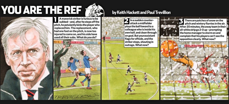 For a chance to win a Philosophy Football T-shirt of your choice from the Guardian range send us your questions for You are the Ref to you.are.the.ref@observer.co.uk. The best scenario used in each new strip wins a T-shirt; Terms apply. For more on You are the Ref's history, click here.